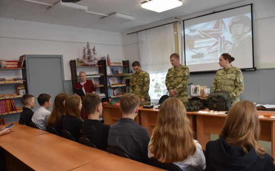 На встречу с семиклассниками школы №1 мы пригласили сотрудников Росгвардии, которые познакомили участников встречи со спецификой службы в войсках национальной гвардии РФ. Школьники узнали о задачах службы, а также о мерах личной безопасности и правилах поведения в различных ситуациях. Ребята познакомились с несколькими военными профессиями: санинструктора, связиста и сапера. Росгвардейцы не только рассказывали молодёжи о своей нелегкой профессии, но и на примере показывали, как действует санинструктор, связист и сапер в полевых условиях. Ребята задавали гостям интересующие вопросы.